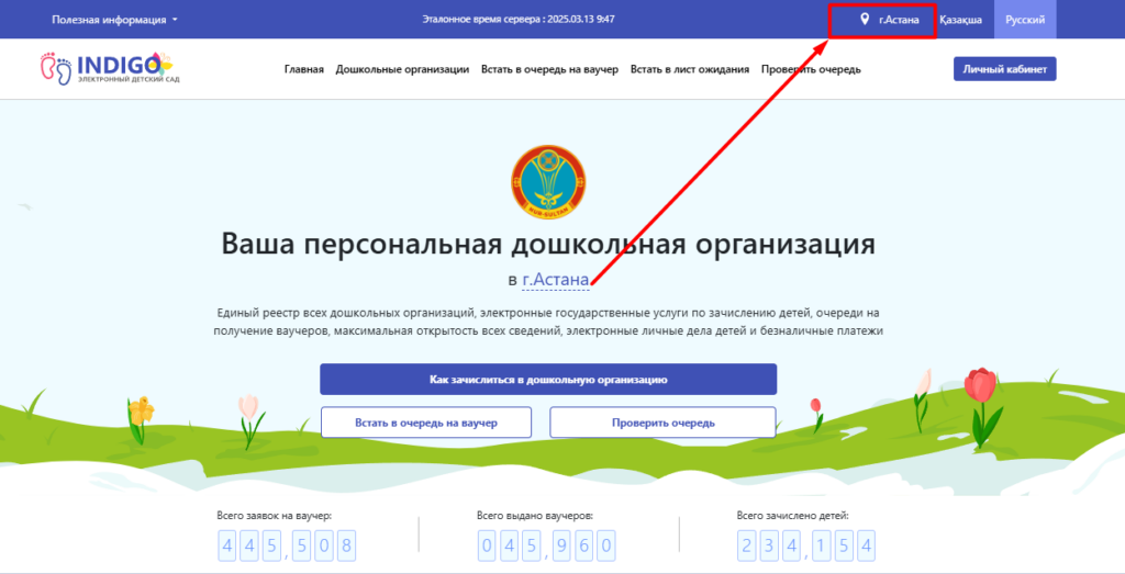 1) Для подачи заявления на постановку в очередь выбираете Город.