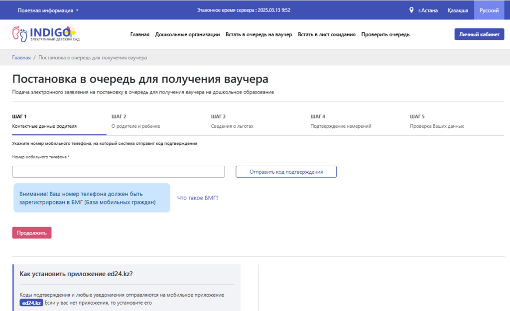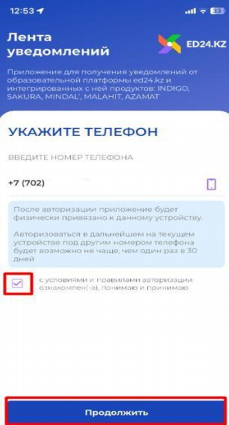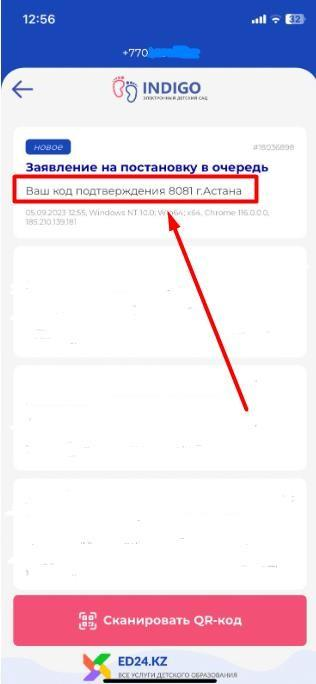 7) В приложении ed24.kz вводите данный ваш контактный номер, после