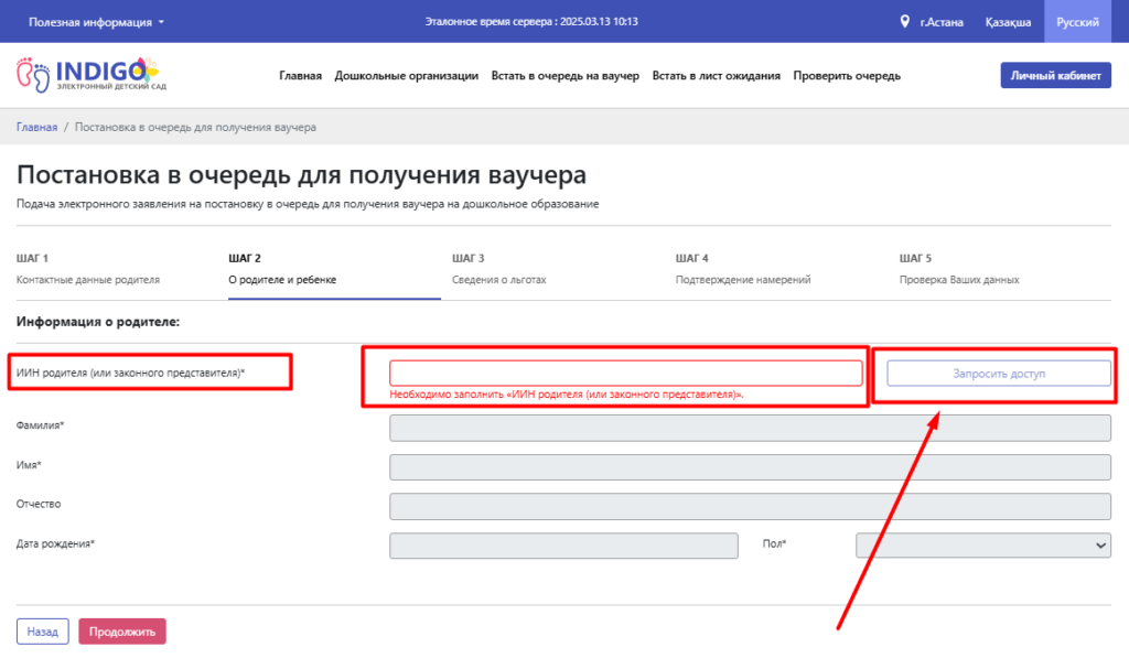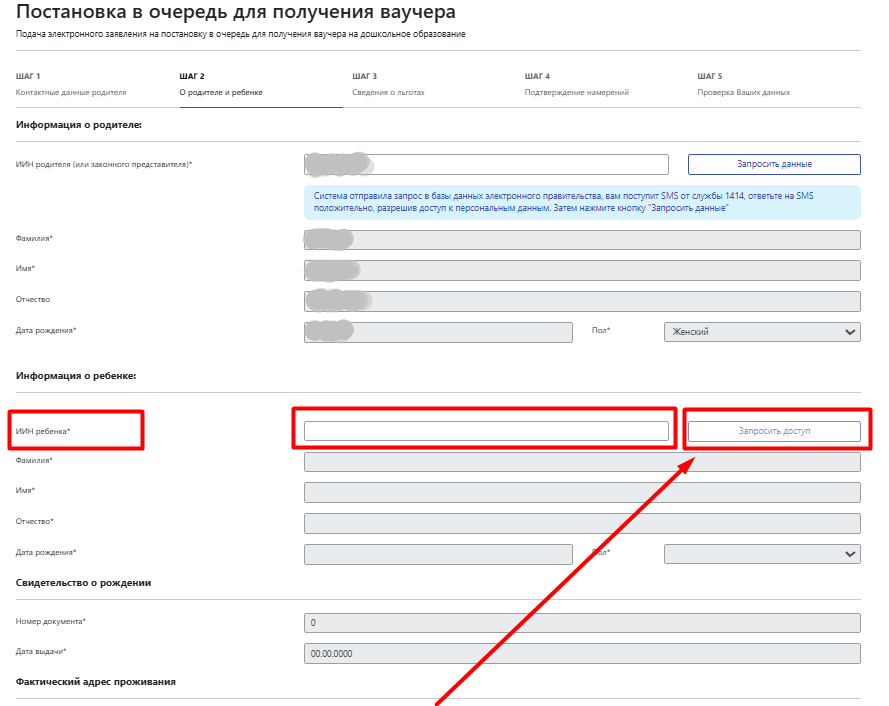 13) После введите ИИН ребенка и нажмите кнопку Запросить доступ и