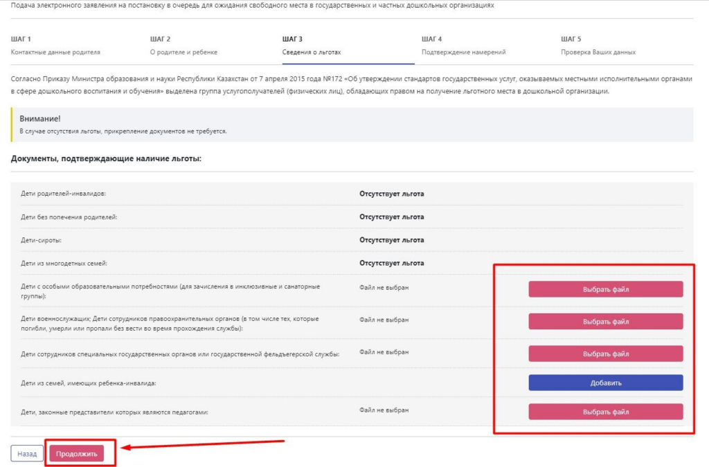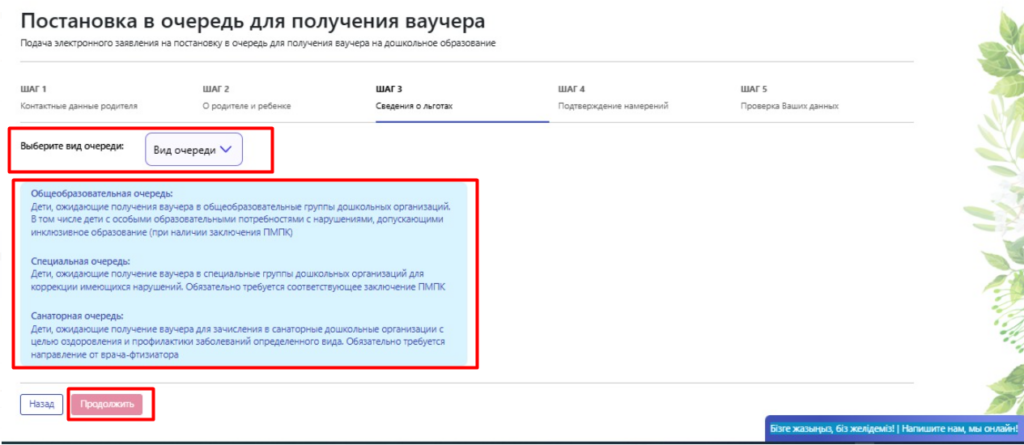 15) Шаг 3. Сведения о льготах. Выбираете нужную очередь: