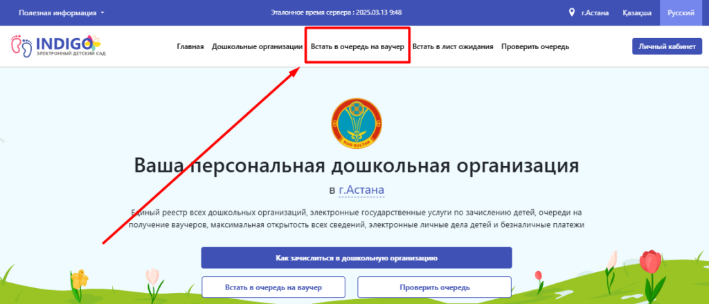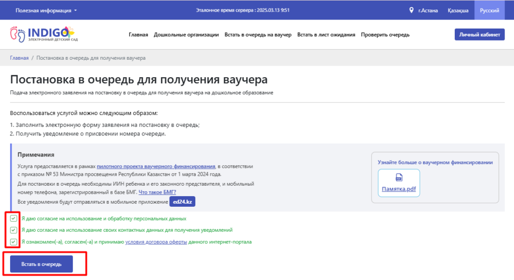 2) Нажимаем кнопку Встать в очередь на ваучер