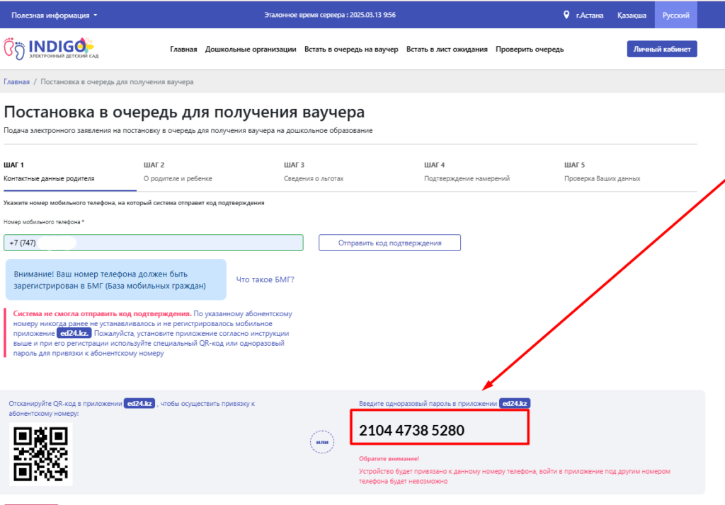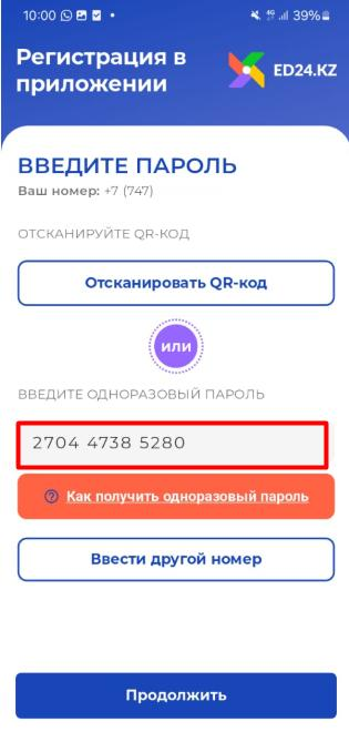 значный пароль для привязки вашего телефона к приложению ed24.kz